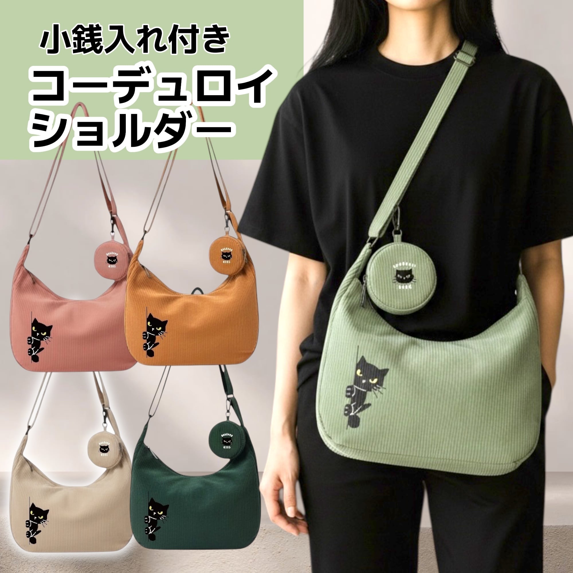春カラー 小銭入れ付きコーデュロイショルダーバッグ