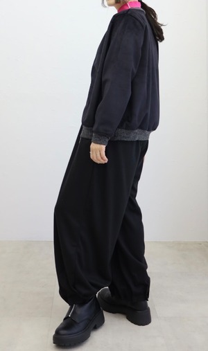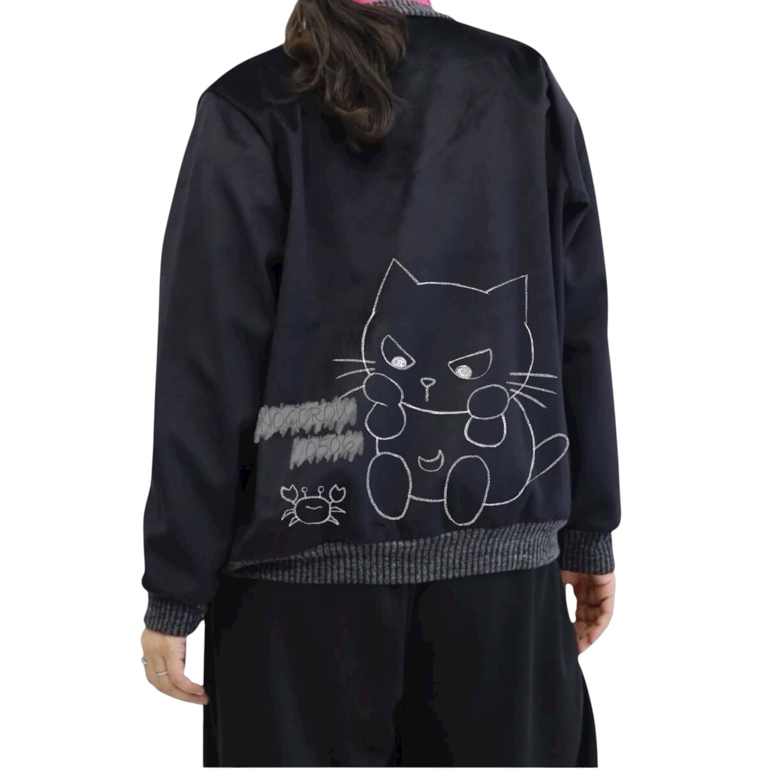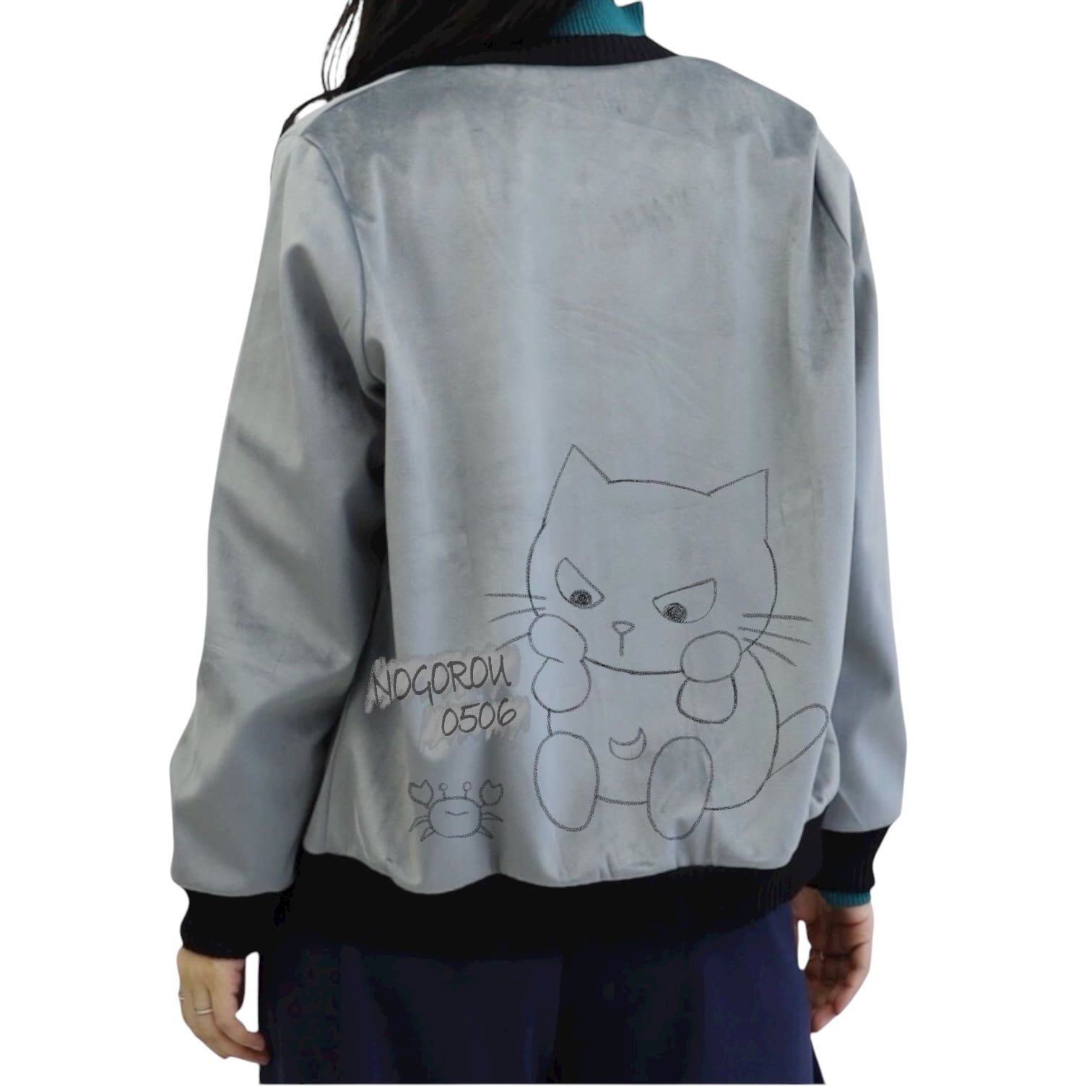 心地よい肌触りのベロア生地を使用したスタジアムジャンバーです。前後に施されたプリントが、スタイリッシュなアクセントを加えます。カジュアルなコーディネートにも、ちょっとしたお出かけにもぴったりの一着です。