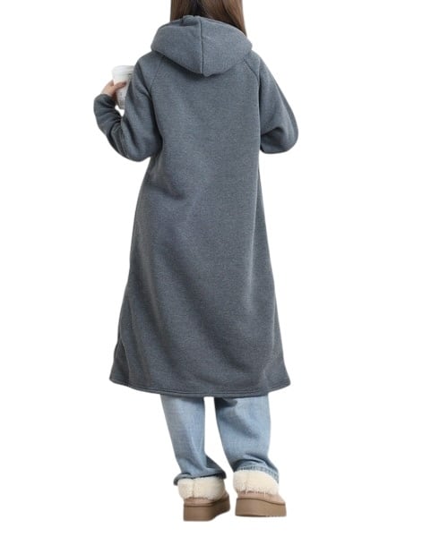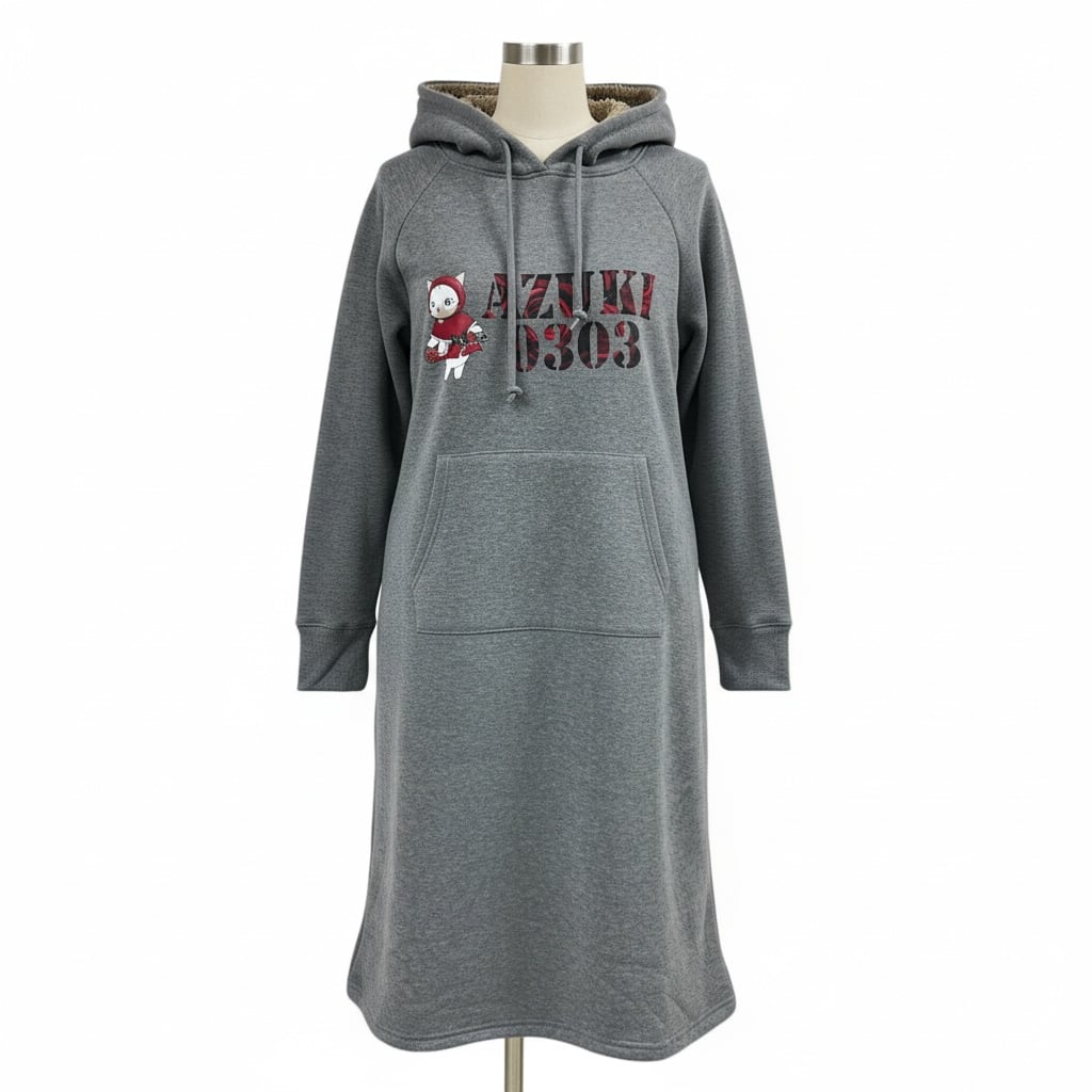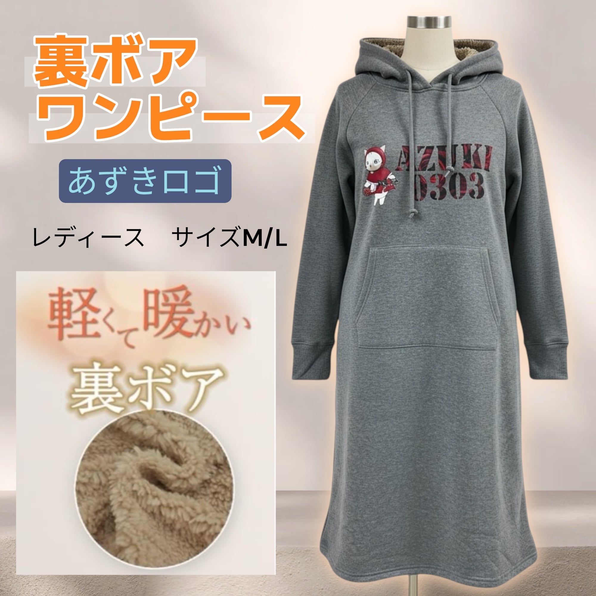 ついに入荷 レディース 2サイズ展開 裏ボア素材 あずきローズロゴ あったかフード付きワンピース グレー