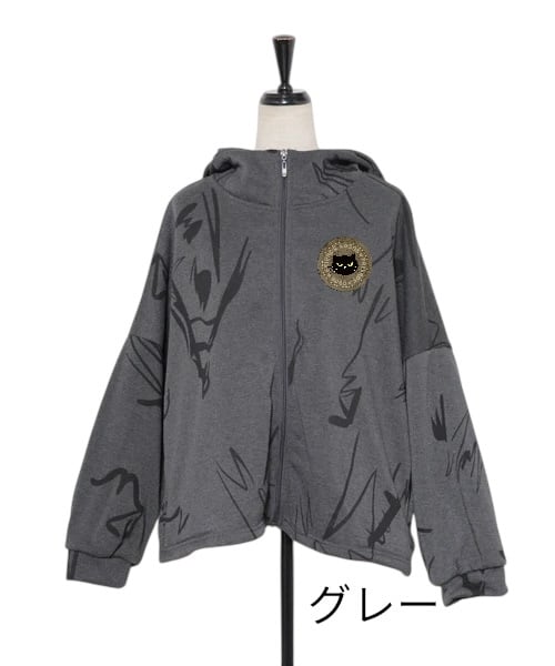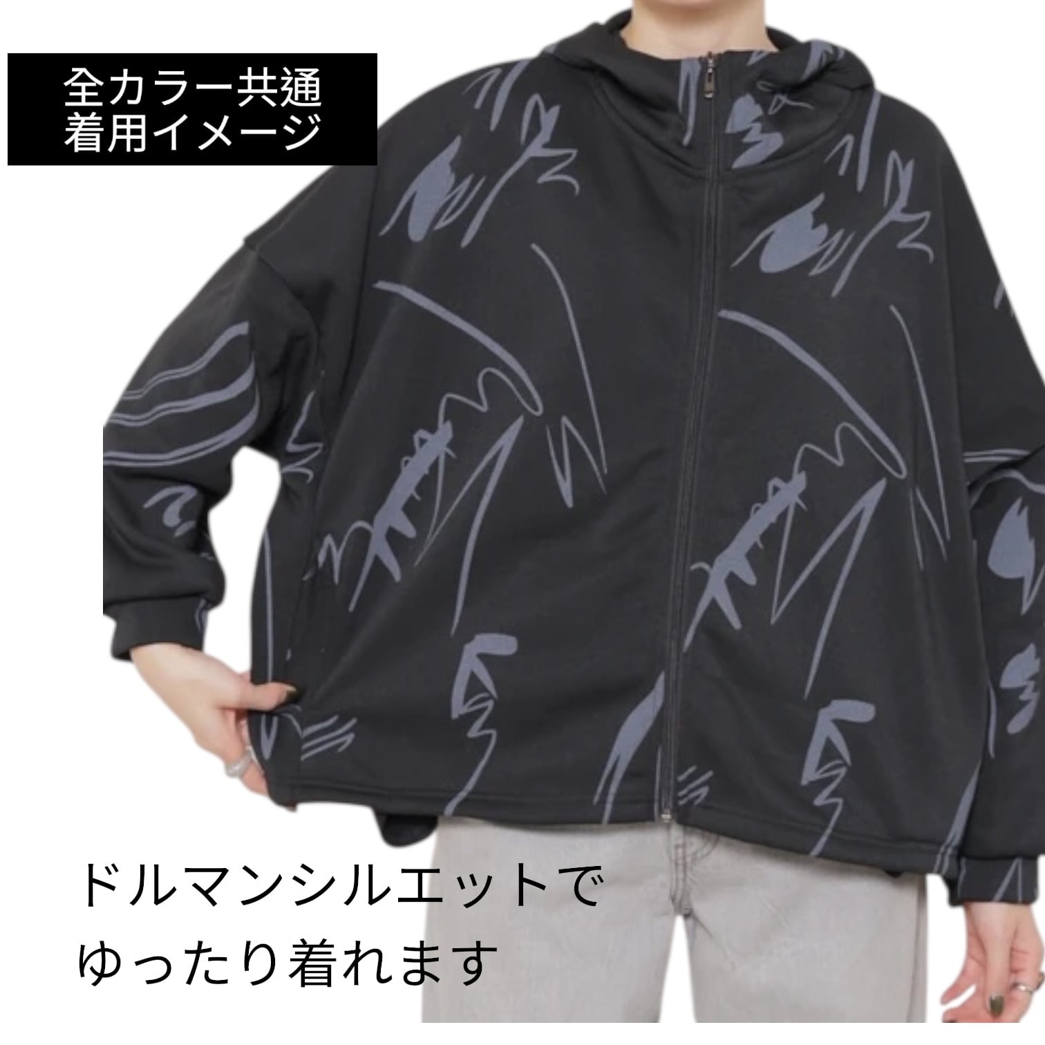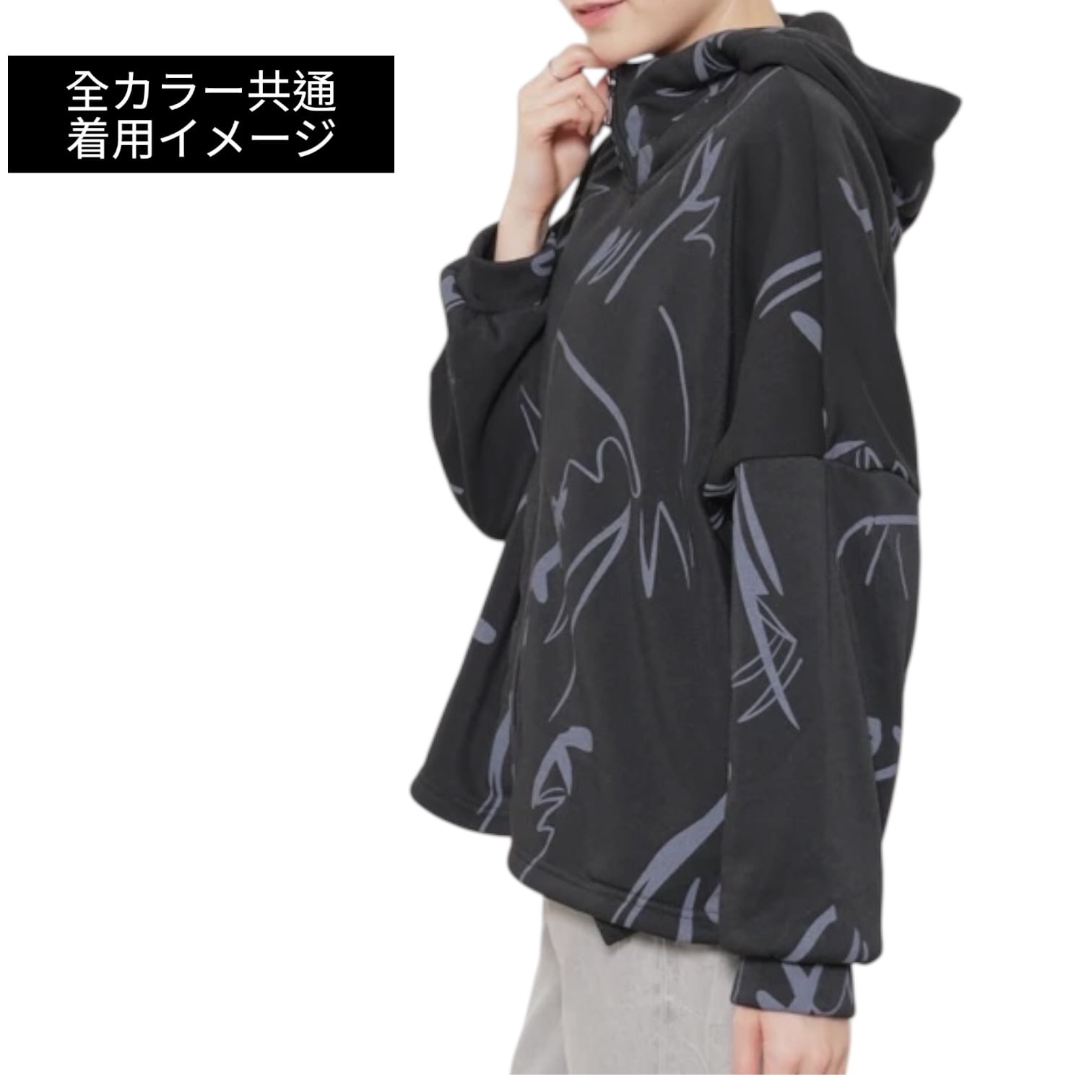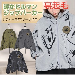 レディースフリーサイズ 4色展開 裏起毛暖かドルマンジップパーカー