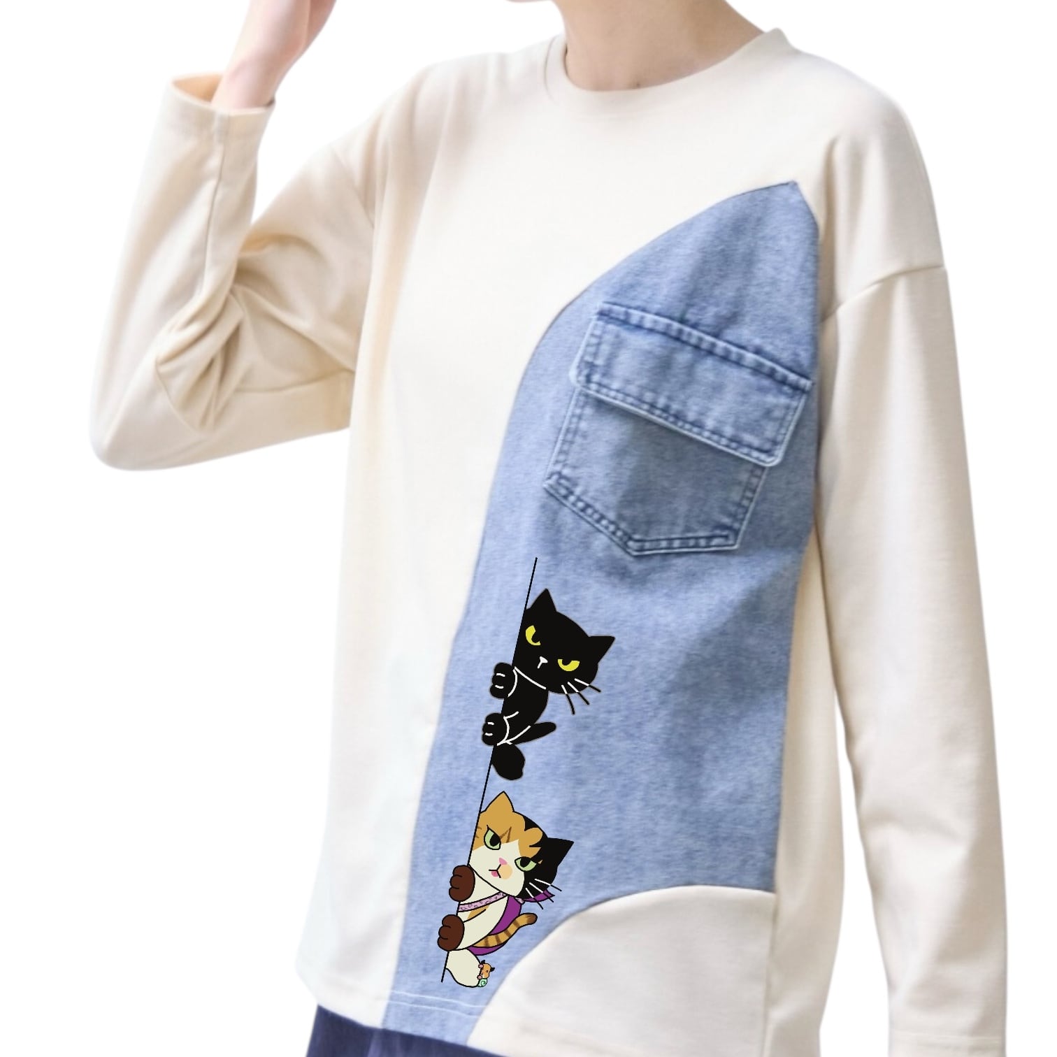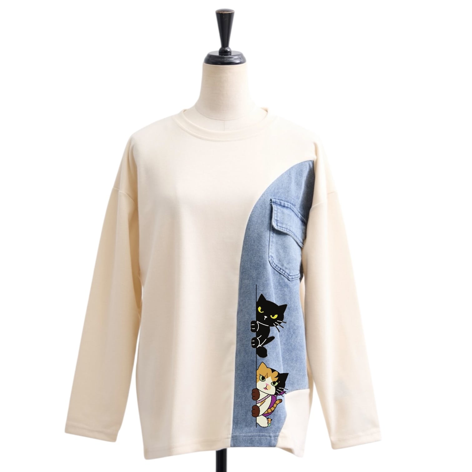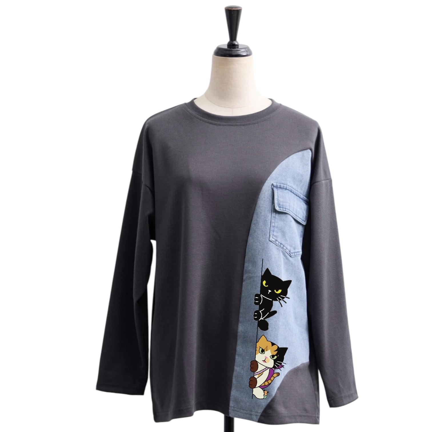 レディースフリーサイズ 4色展開 デニム切り替えカットソー