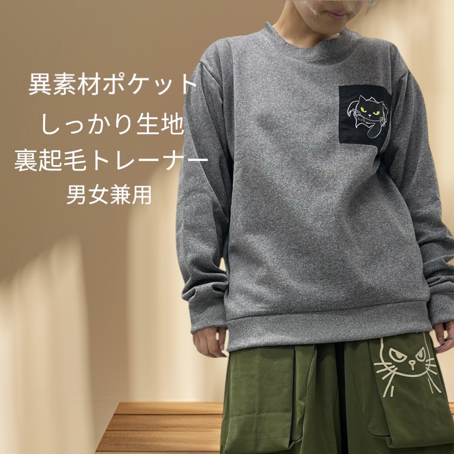 少量再入荷 男女兼用 サイズ展開 M~LL 突き破りノゴロー 異素材ポケットしっかり生地裏起毛トレーナー ネイビー