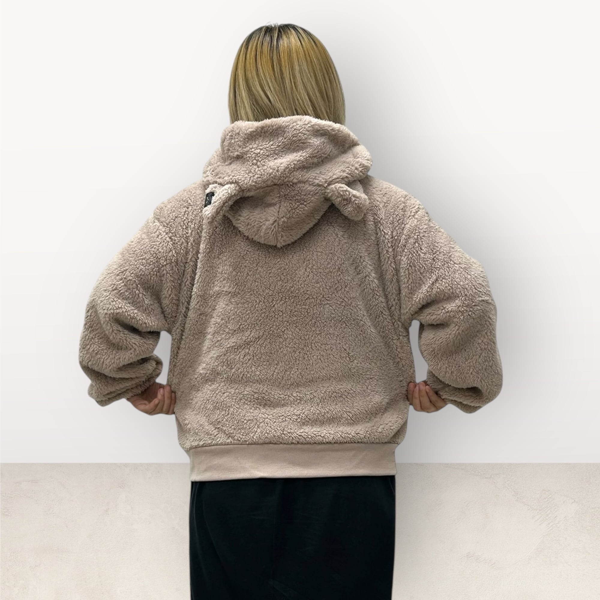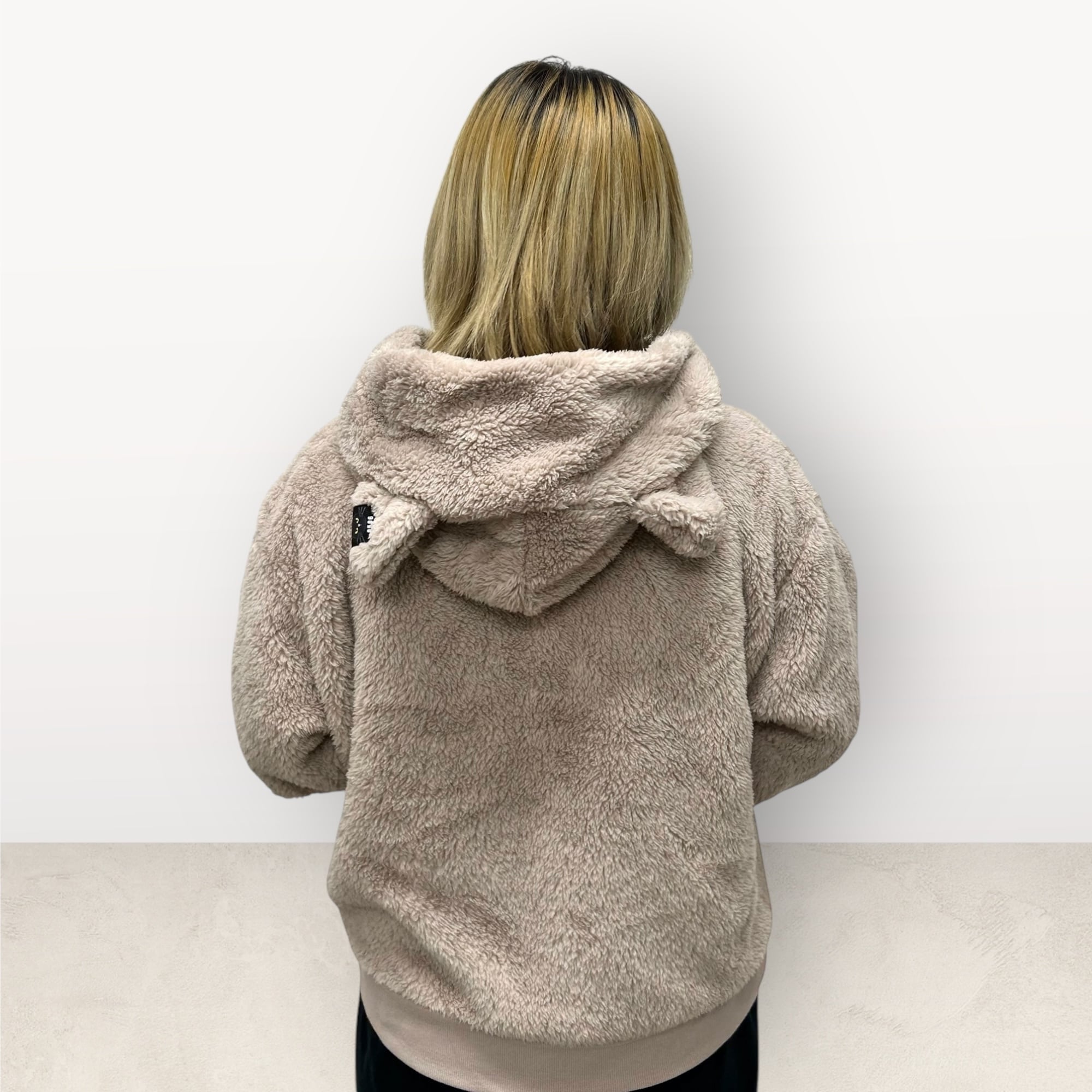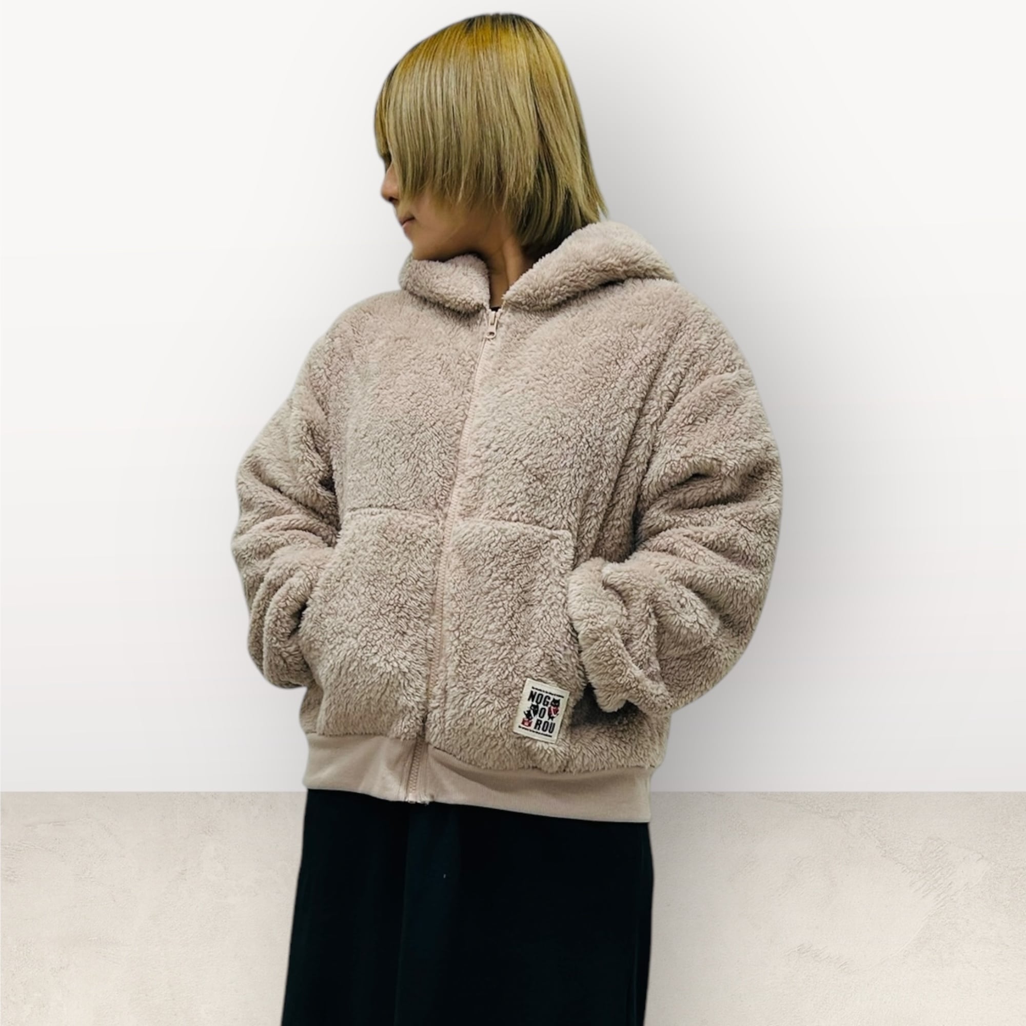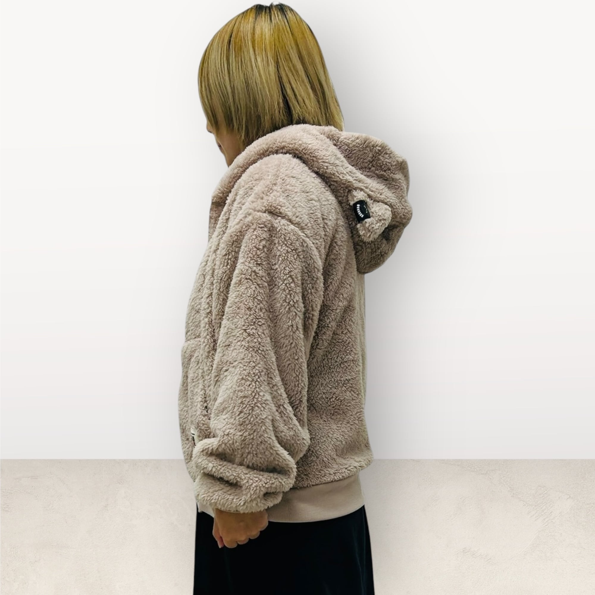 レディースフリーサイズ もこもこネコ耳フードzipパーカー くすみピンク