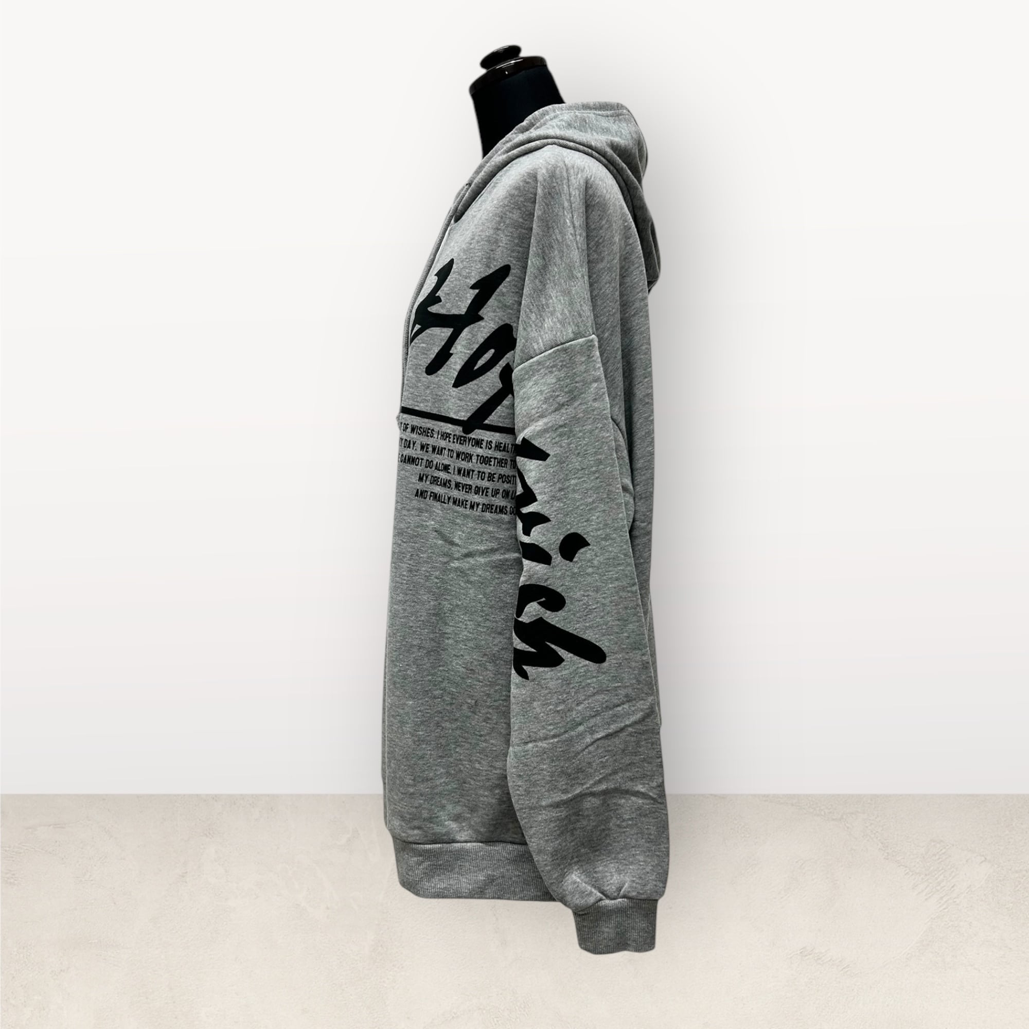 少量再入荷 男女兼用フリーサイズ 突き破りおしりノゴロー オーバーサイズ裏起毛プルパーカー グレー