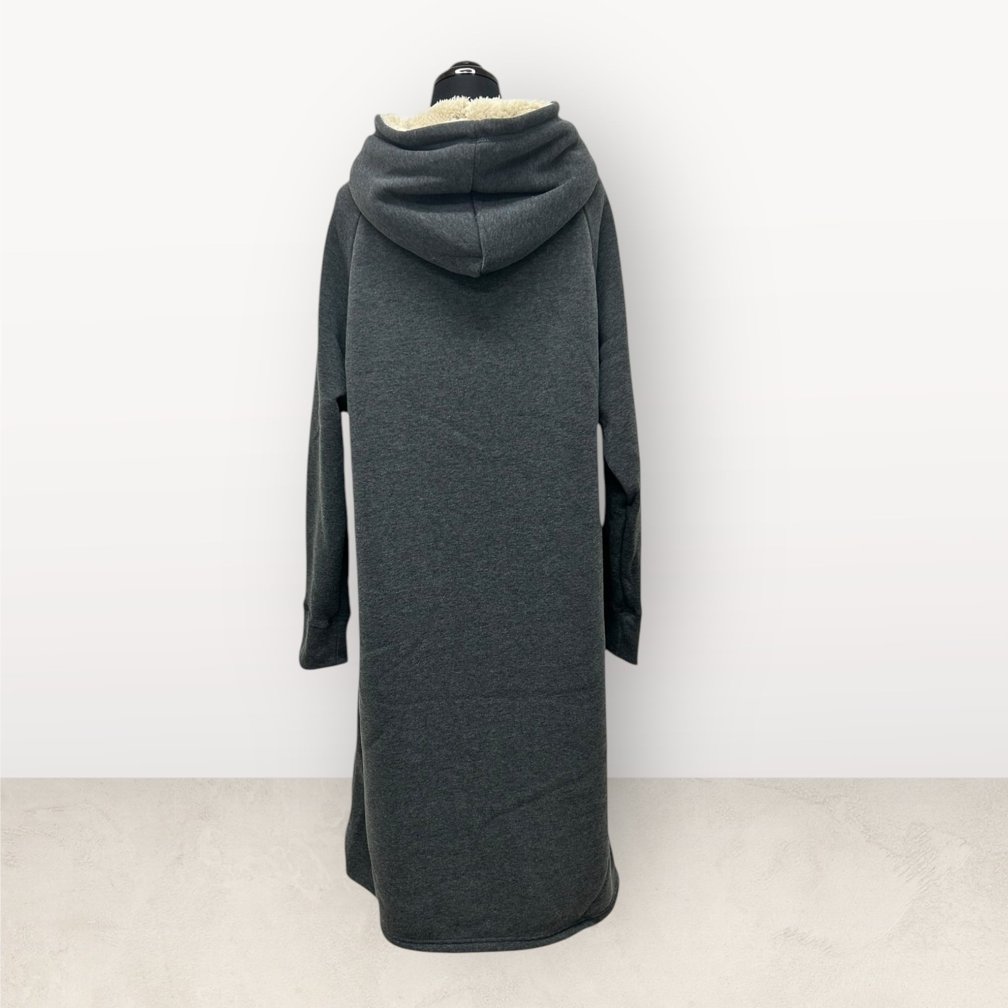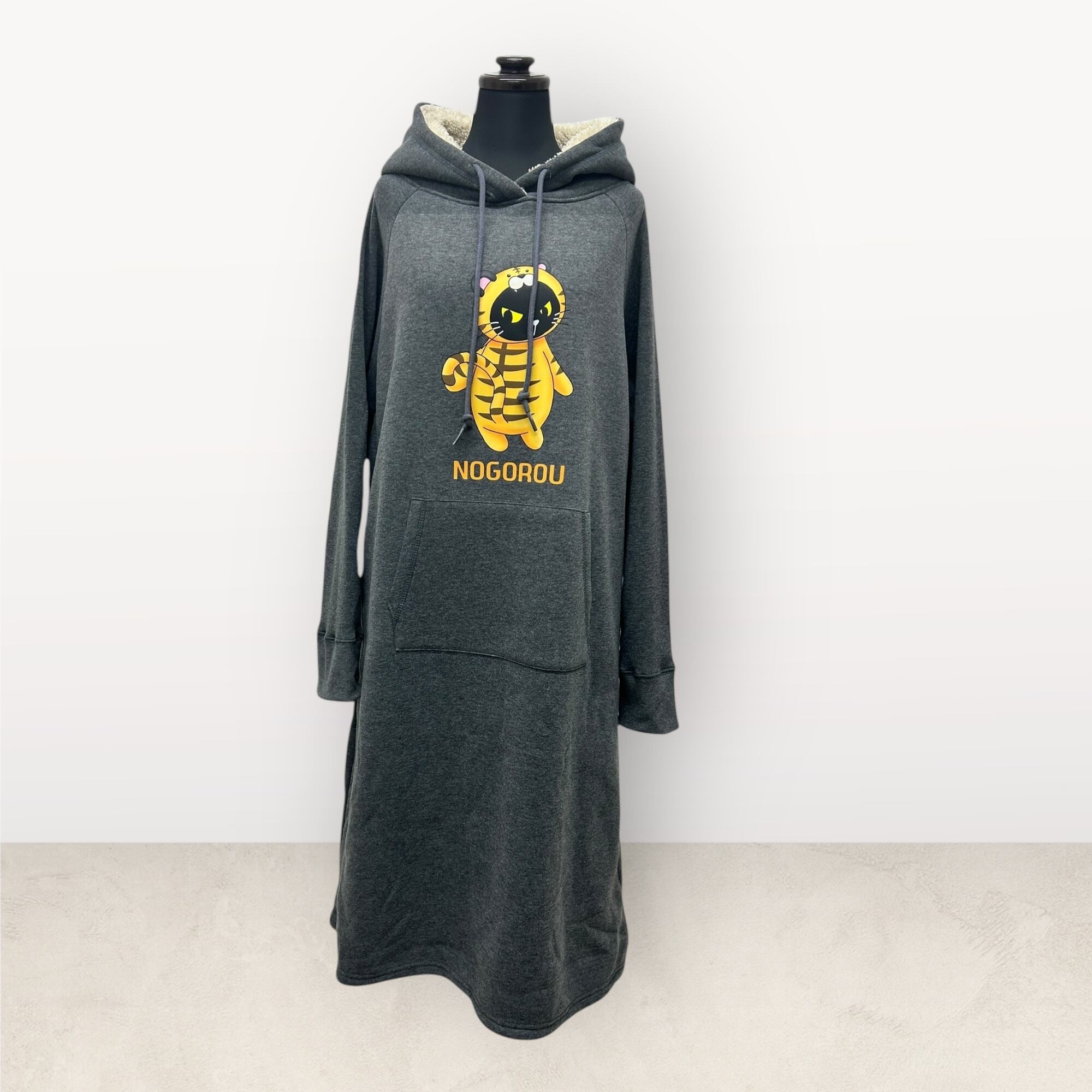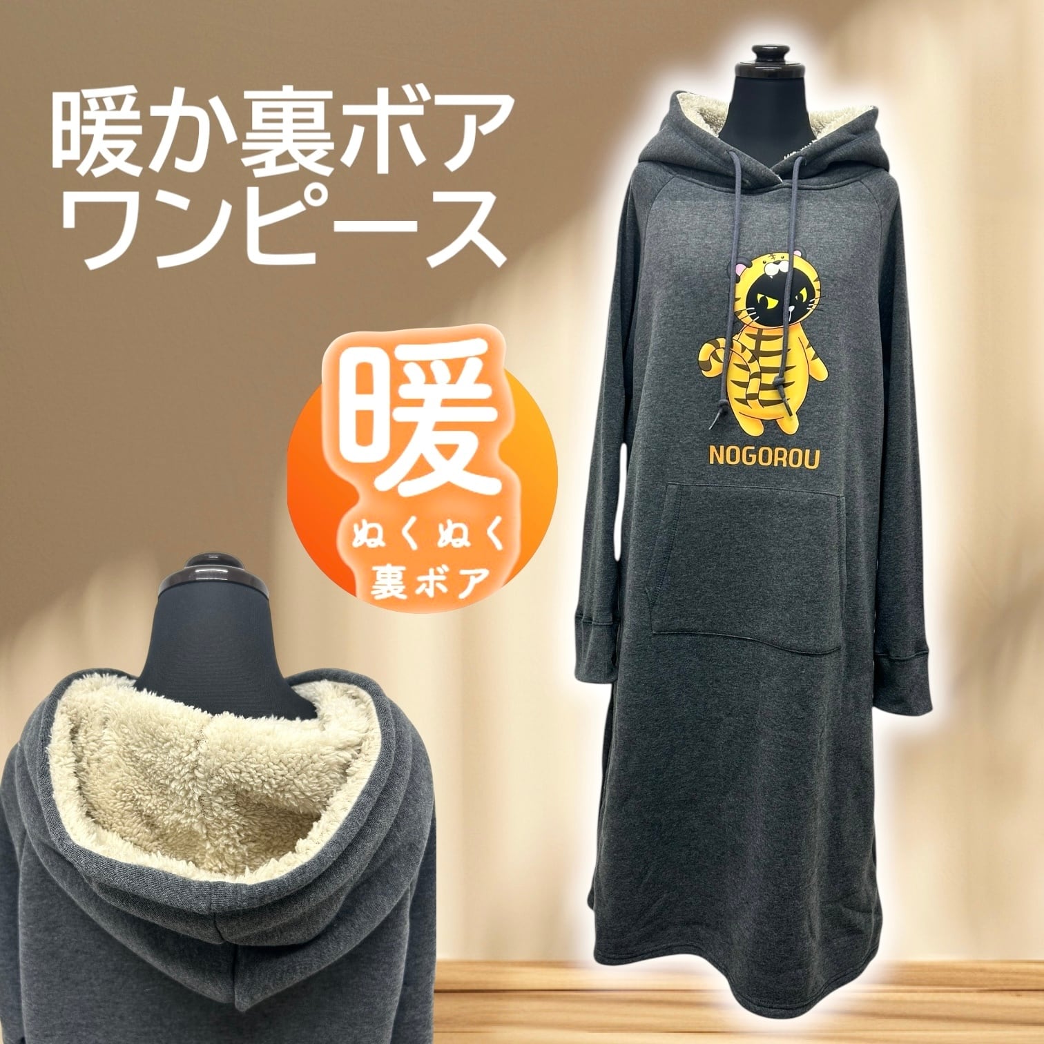 レディース 2サイズ展開 裏ボア素材 虎ノゴロー あったかフード付きワンピース ダークグレー