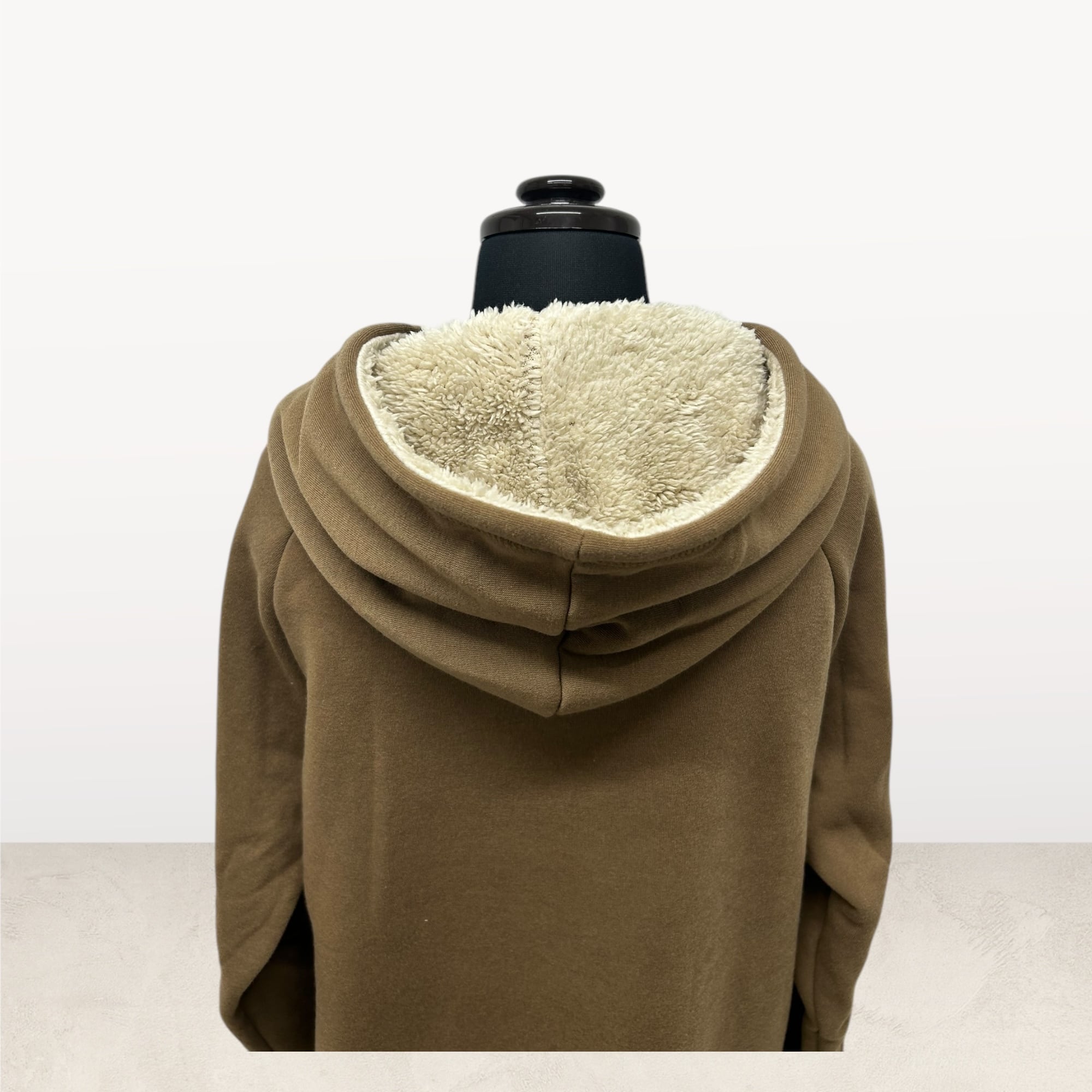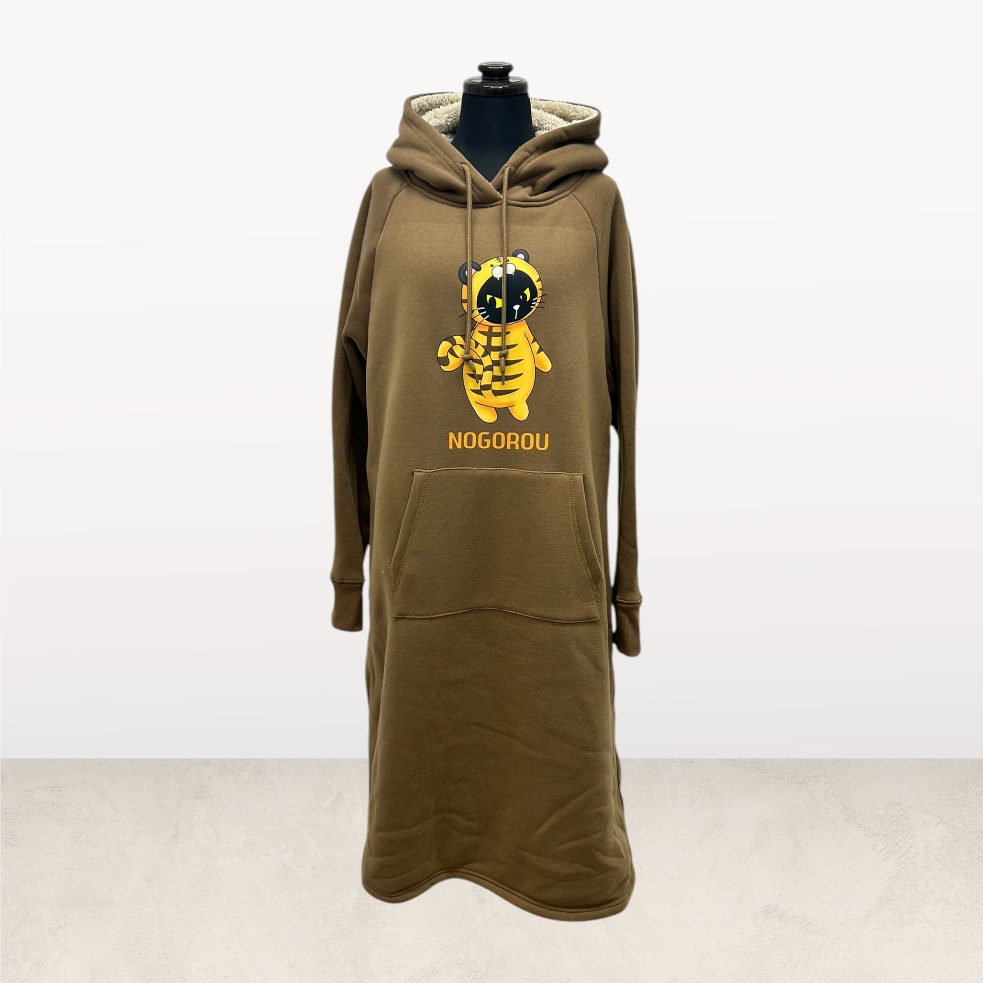 レディース 2サイズ展開 裏ボア素材 虎ノゴロー あったかフード付きワンピース キャメル